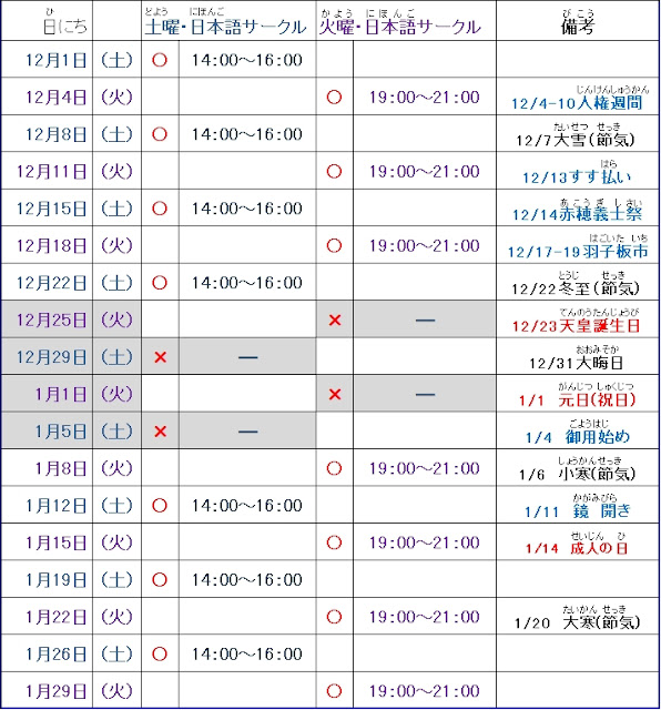外国人のための日本語サークル 豊島区JR大塚駅近く 土曜日午後2時~4時 火曜日午後7時~9時